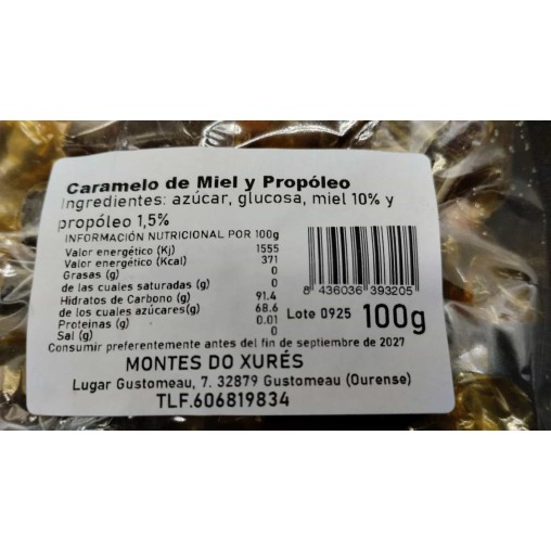 Ingredientes: Azúcar, glucosa, miel (10%) y propóleo (1,5%).