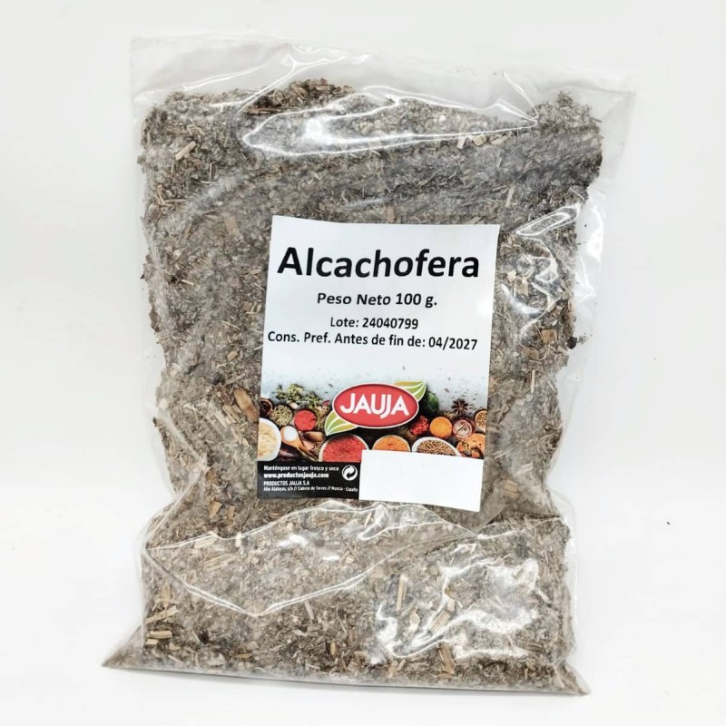 Alcachofera seca JAUJA en bolsa de 100 g. Planta depurativa muy utilizada en infusión para cuidar el hígado, reducir el colesterol y mejorar la digestión. Ideal como apoyo natural en dietas detox y digestivas.