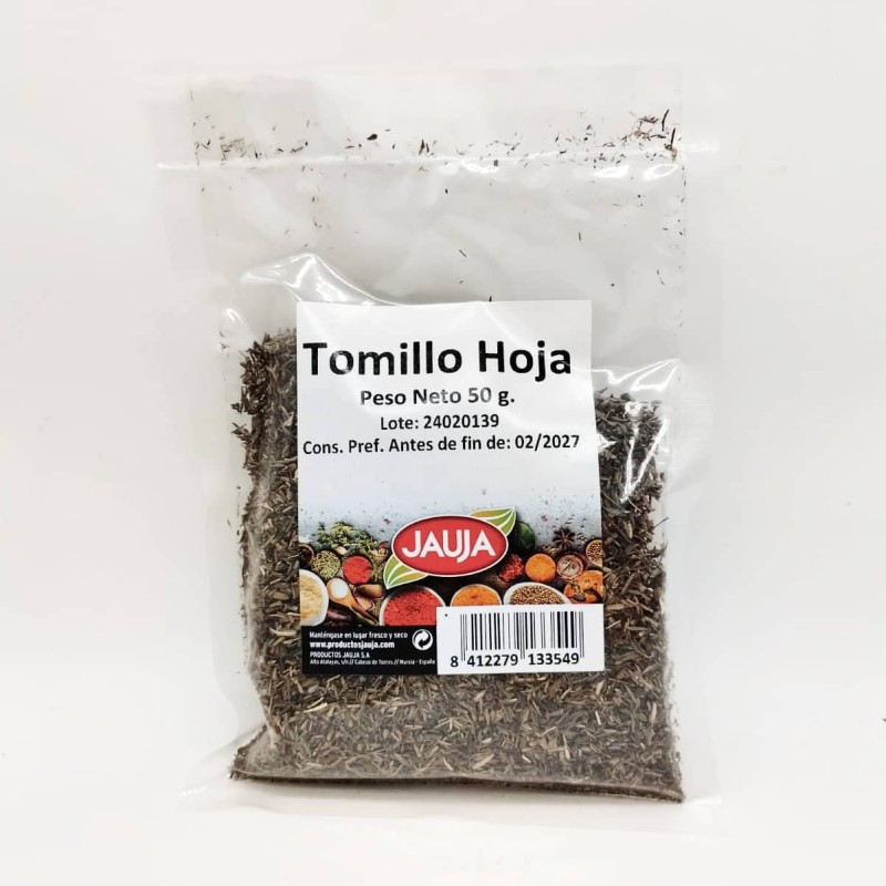 El Tomillo Hoja JAUJA 50 g es una hierba aromática de gran valor tanto en la cocina como en la herbolaria tradicional. En la gastronomía, se utiliza por su sabor intenso y cálido para realzar platos de carne, sopas, salsas, asados y legumbres. En infusión, el tomillo es muy apreciado por sus propiedades expectorantes, antisépticas, digestivas y calmantes.